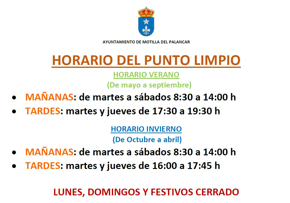 Disponemos de un PUNTO LIMPIO, en el cual podemos depositar nuestros residuos cuando no exista un contenedor específico en la población ó cuando por volumen, sea imposible el uso de los contenedores específicos.